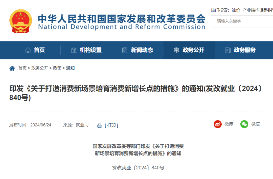 6月24日,国家发展改革委会同农业农村部、商务部、文化和旅游部、市场监管总局联合印发《关于打造消费新场景培育消费新增长点的措施》,指出:将培育健康养老托育消费新场景。